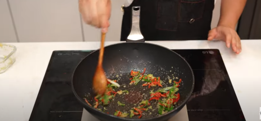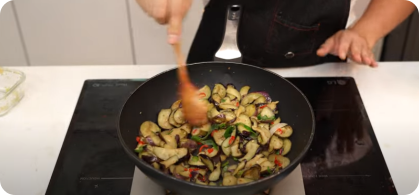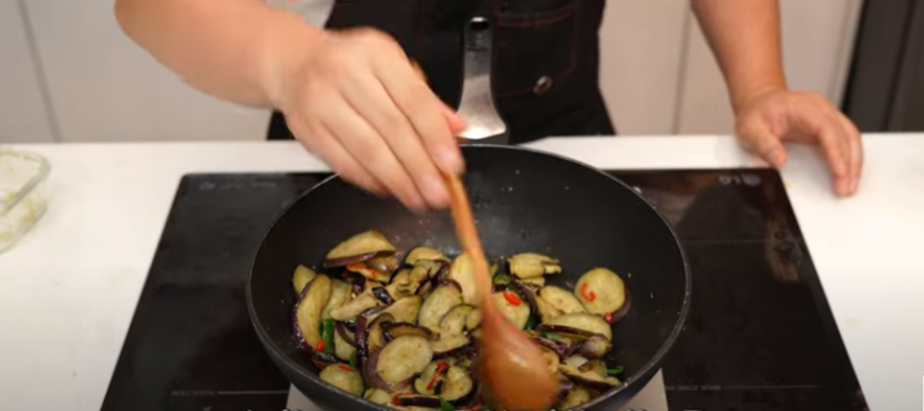 가지를 넣어 충분히 볶아줍니다. 가지를 2~분 정도 강불에서 충분히 볶아줍니다.