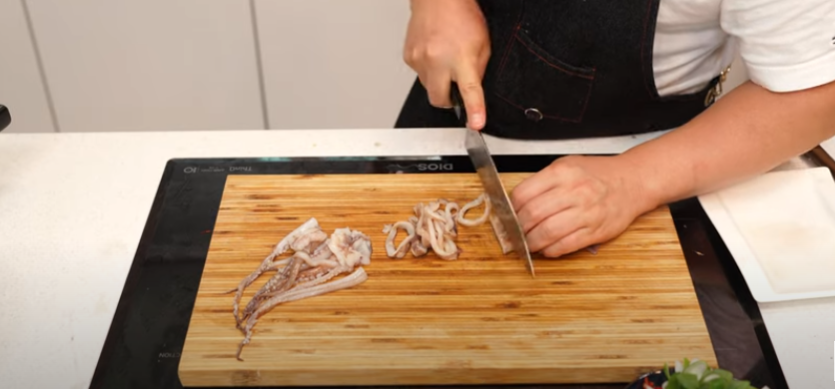 가지만 볶음으로해도 맛있지만 오징어 한 마리 내장 제거 후 손질해 줍니다. 볶음양념을 먼저 만들어줍니다.