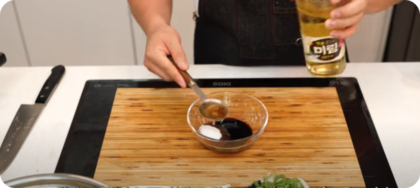 양념: 들기름 2T (식용유),다진마늘 1T , 진(양조) 간장 1T, 굴소스 0.5T , 두반장 1T(없으면 굴소스 1T), 설탕 1T