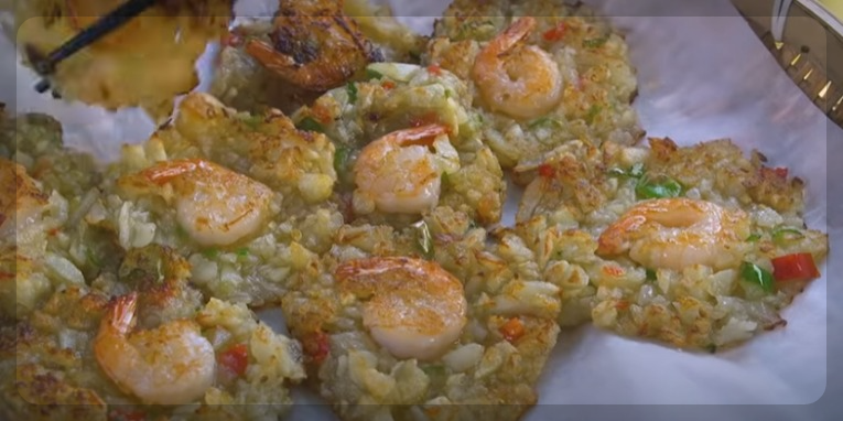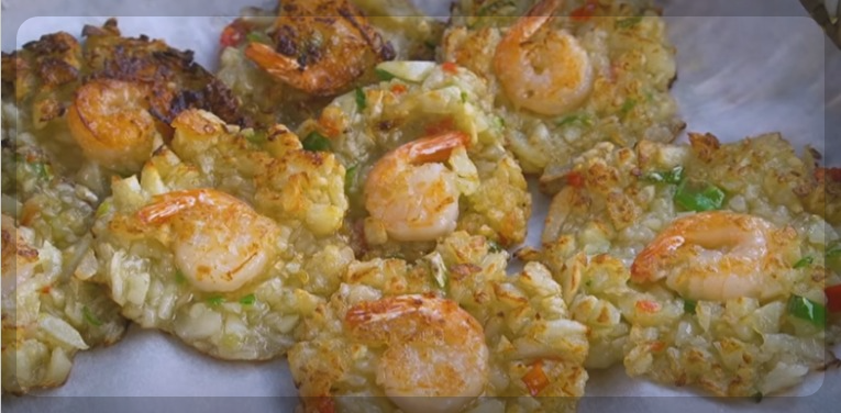 올려주고 반죽국물을 새우 위에 적셔주세요. 새우감자전 눌러가며 앞뒤 노릇노릇하게 구워주세요.