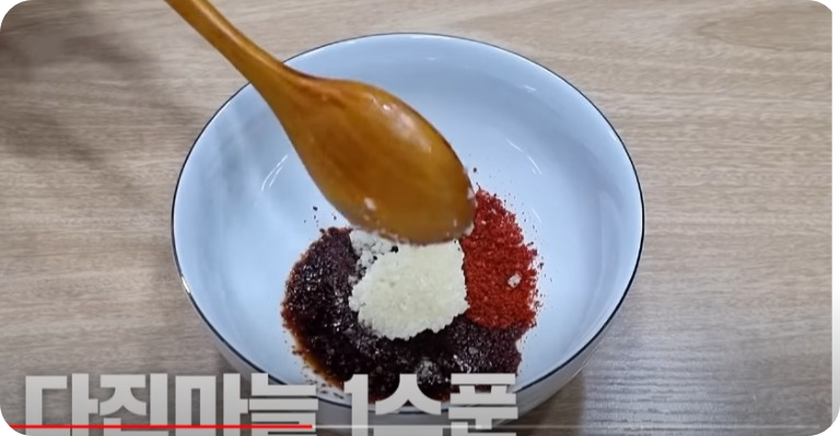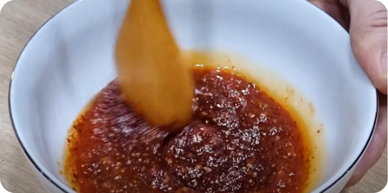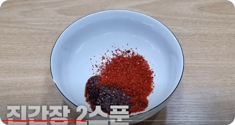 양념장: 수북하게 고춧가루 1스푼, 진간장 2스푼, 다진 마늘 1스푼, 수북하게 토마토소스 2스푼
