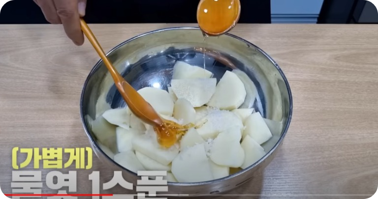 절임감자는 중간에 한 번씩 뒤섞여 섞어주세요.