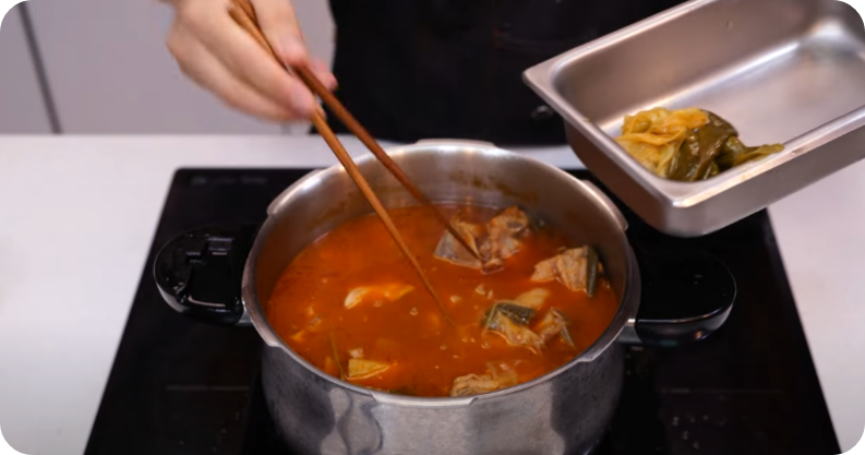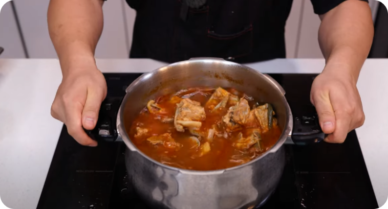 간까지 보았다면 이대로 5~10분간 끓여 완성해 줍니다. 오래 끓이지 않아도 부드럽고 살이 쏙 빠지는 감자탕요리