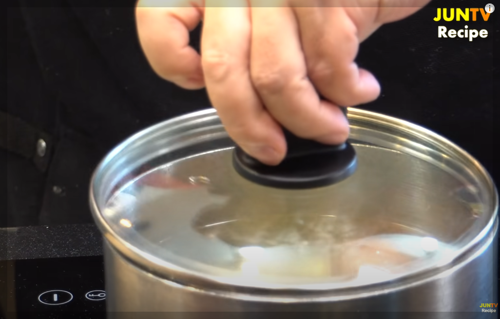 불을 끄고 10분 있으면 완전한 반숙이 됩니다.