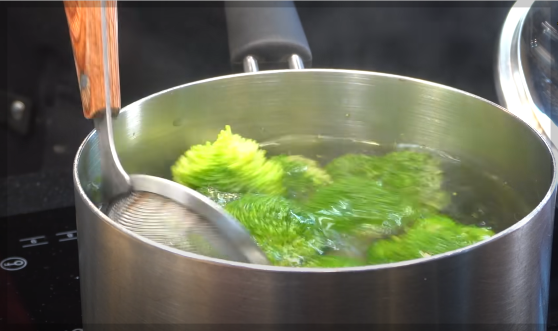 소금 한 고집 넣어 브로콜리를 10~30초 내로 데쳐줍니다. 찬물에 헹구지 말고 그대로 식혀주세요.