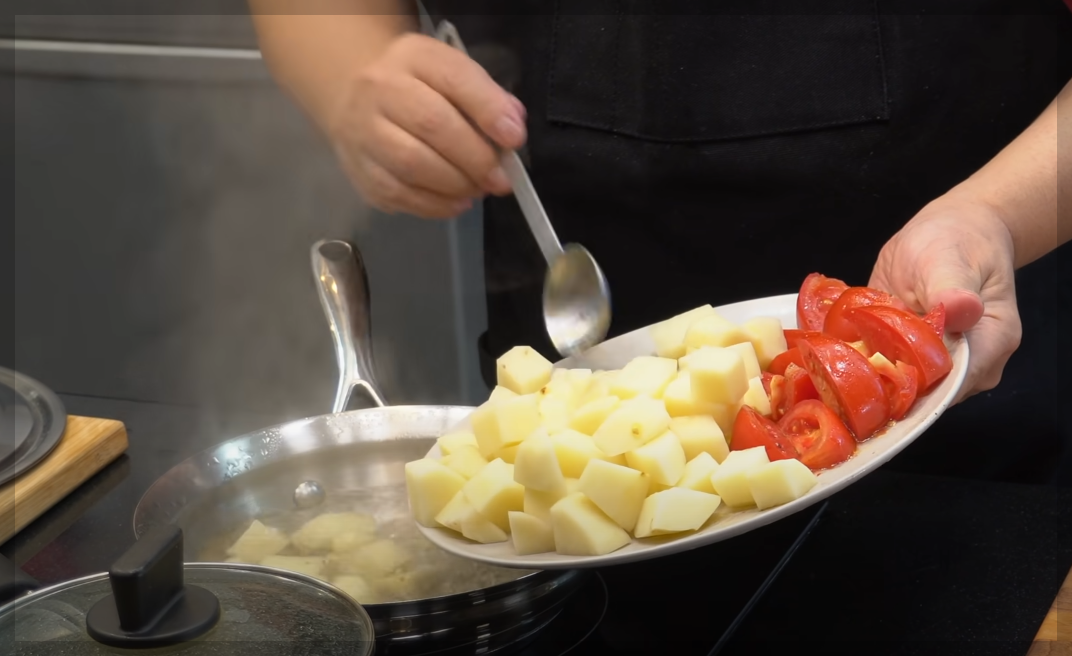 감자는 물이 끓기 시작하면서 6~7분이면 삶아집니다.