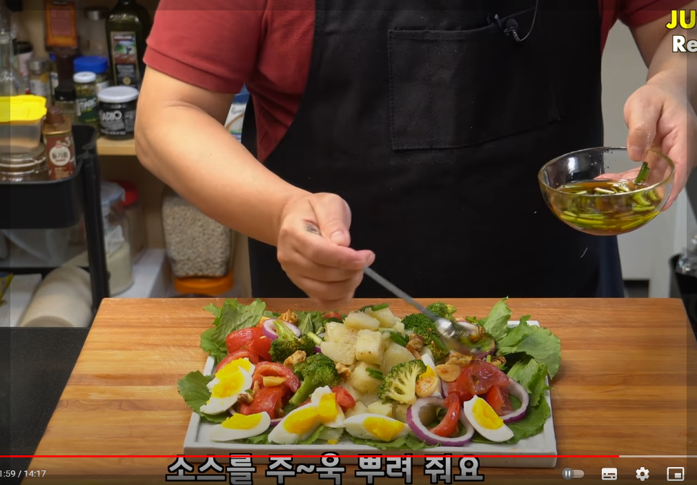 한끼 식사 샐러드 요리법 소개드려볼게요. 언제나 건강을 생각하며 조리하시는 열정적인 모습이 멋있는 준티브