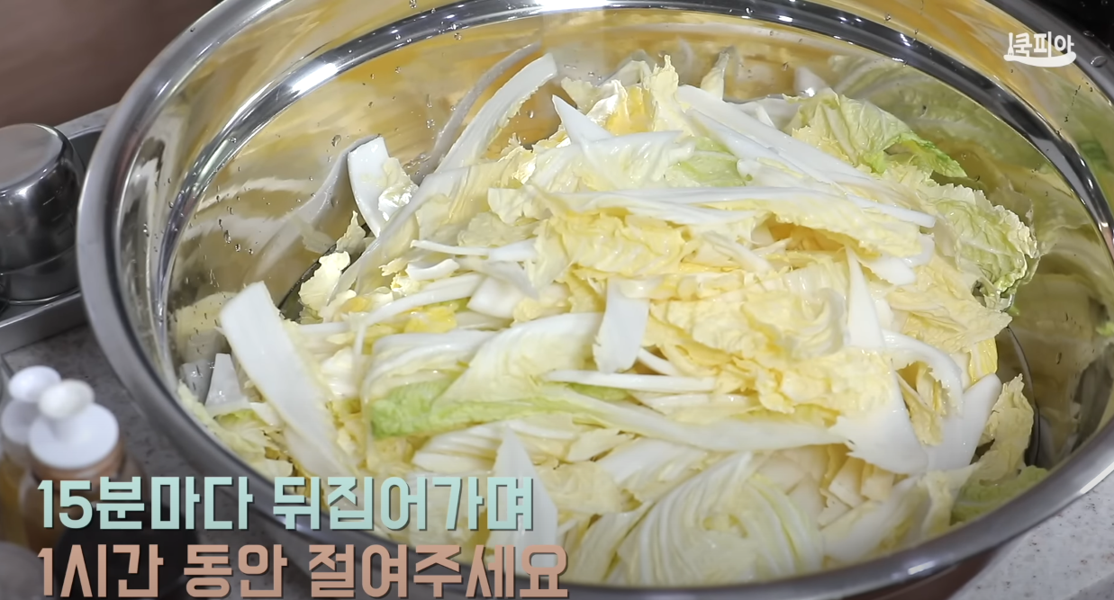 배이게 1시간 절여줍니다. 절이면서 15분마다 뒤집어주면서 한 시간 절여줍니다.