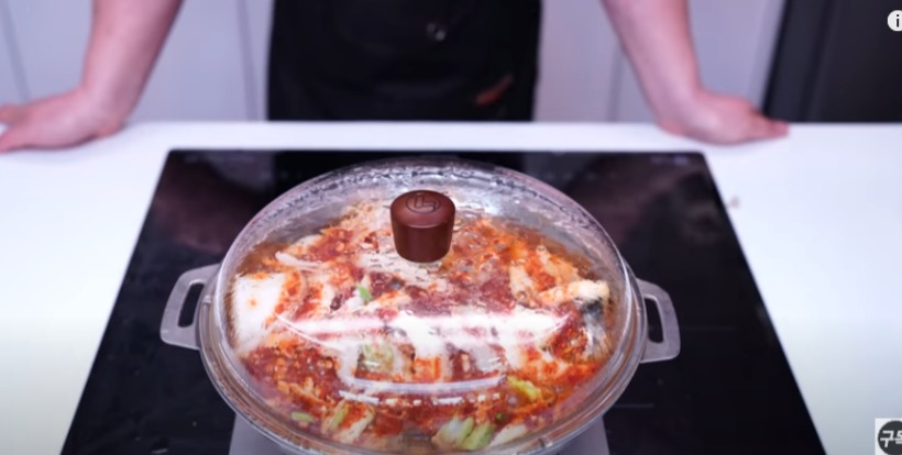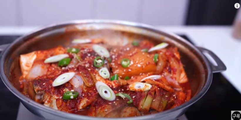 비린내를 날려가며 끓여주다 뚜껑 덮어 약 5~7분 간 팍팍 끓여주면 완성입니다.
