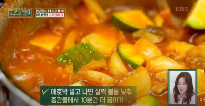 입맛 살려주는 밥도둑찌개 애호박 고추장찌개 어남선생 레시피로 소개드려봅니다.