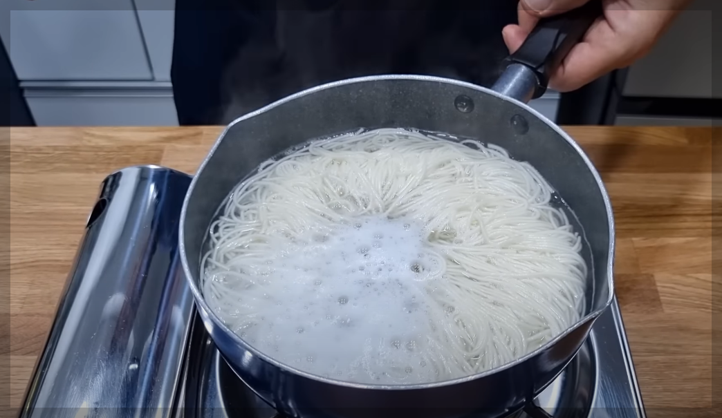 소면 삶기: 소면 100g+소금 1/4큰술- 3분 20초