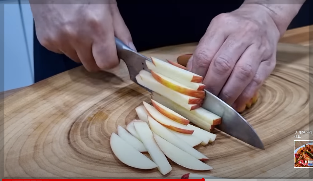 사과 반 개도 채 썰어 준비합니다.