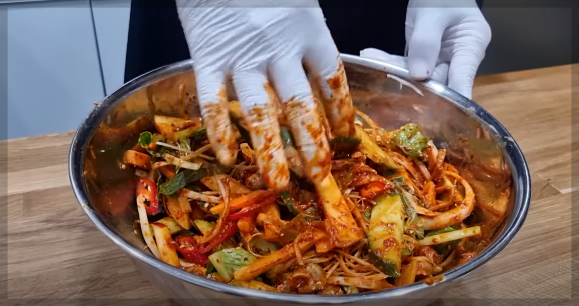야채와 양념장을 골고루  섞이도록 버무려주고 완성 접시에 담아주세요.