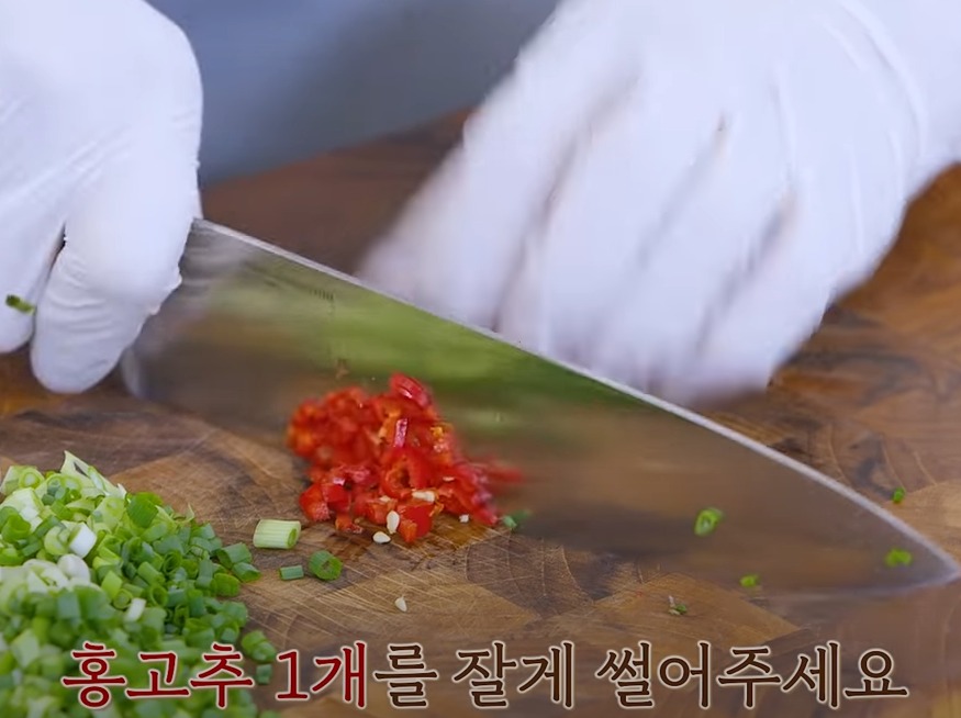 잘게 썰어줍니다. 실고추는 질겨 사용하기에 어울리지 않아요, 홍고춧대신 대추를 넣어도 맛있답니다.