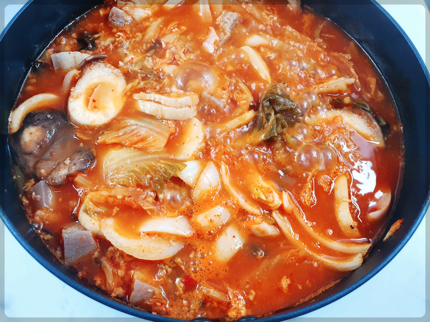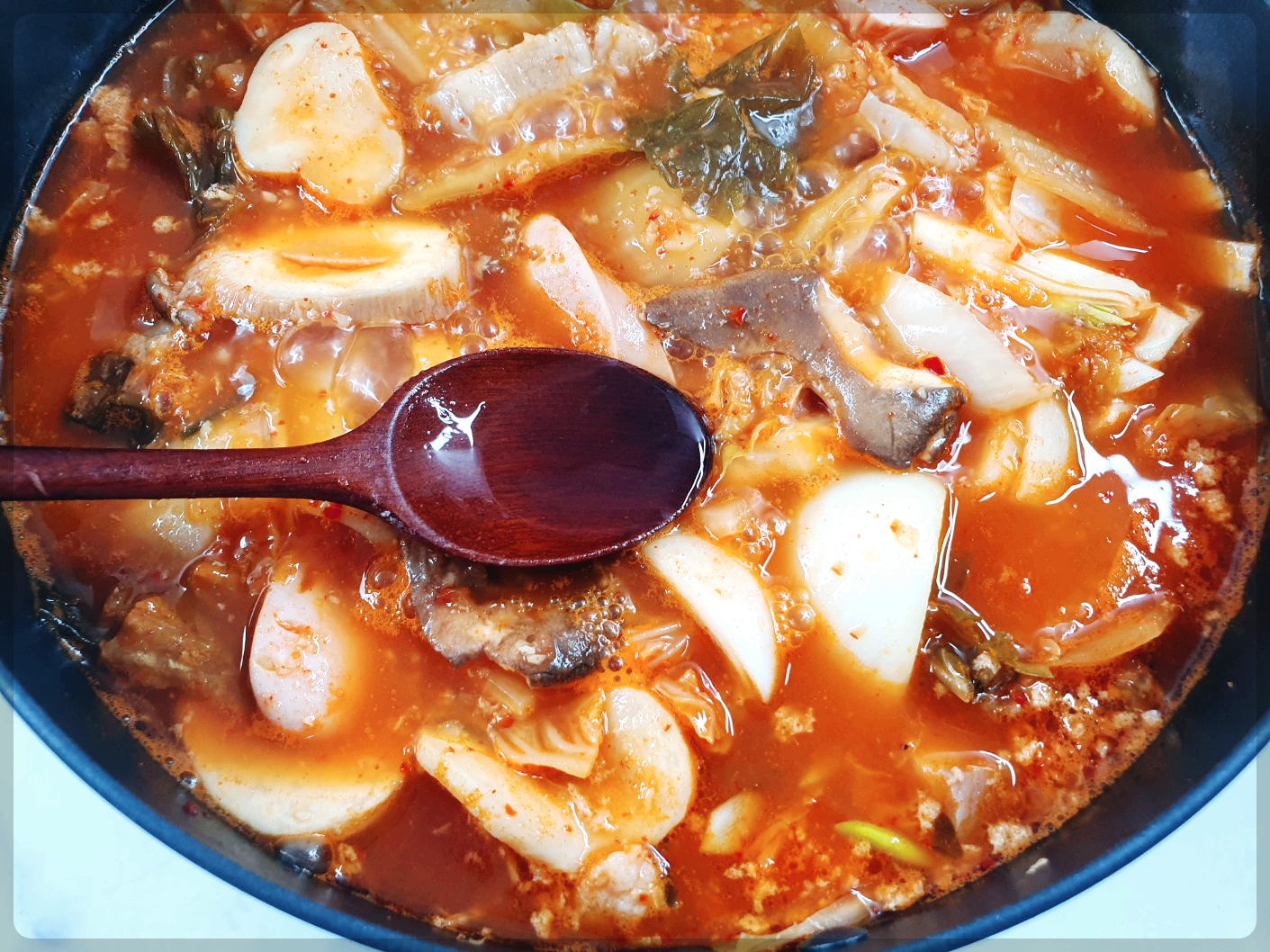 국물요리로 최고입니다. 만약 집에 신김치가 없다면 식초 한 큰 술 넣어 끓이면 신김치의 맛을 느낄 수 있습니다.