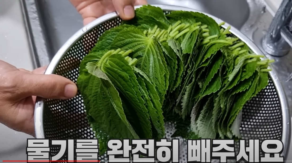 씻어준 깻잎은 물기를 탁탁 털어 물기를 완전히 제거해 줍니다.