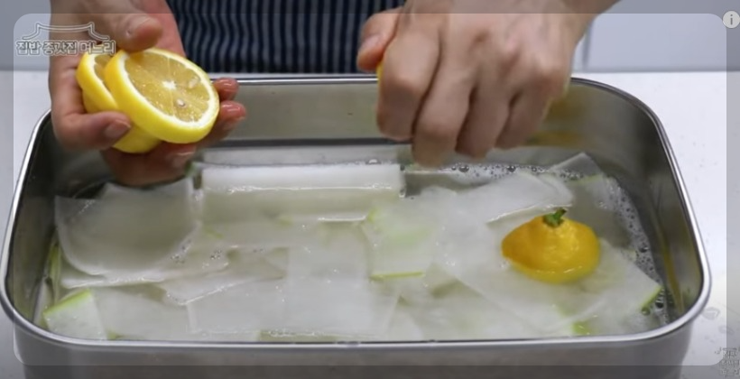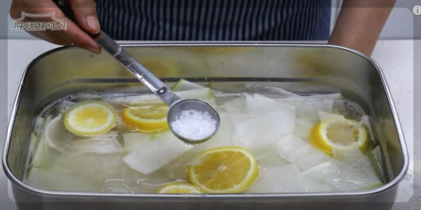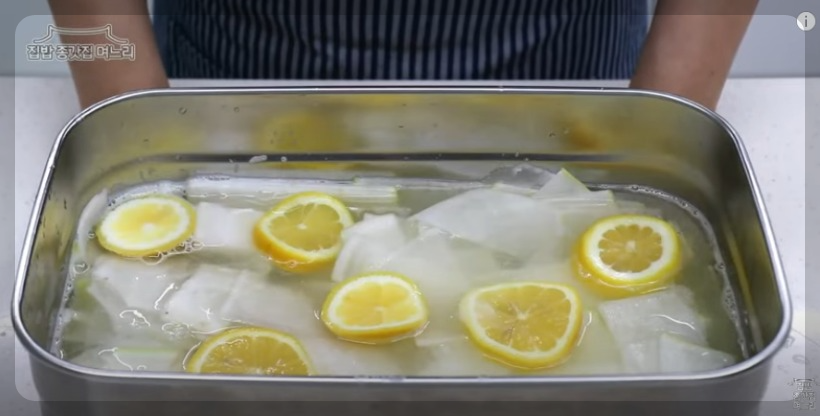 준비 재료: 무 1kg, 배 1개 600g, 키위 1개, 레몬 1개, 굵은소금 2큰술, 멸치 액젓 1큰 술, 다진마늘 2큰 술,
