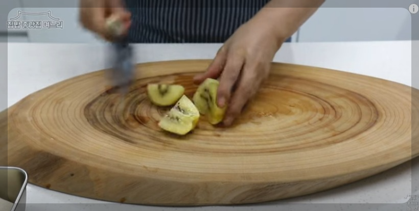 배 한 개 600g 은 껍질을 벗겨 믹서에 갈기 좋은 크기로 잘라주고 키위 한 개도 껍질 벗겨 잘라줍니다.