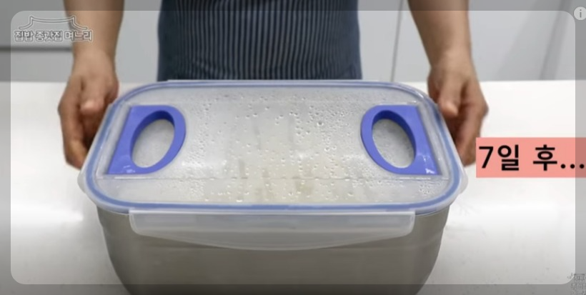 육수가 톡쏘는 시원 한 맛을 맛볼 수 있으니 숙성을 잘해주세요. 일주일 후 냉면육수를 열어보니 잘되었습니다.