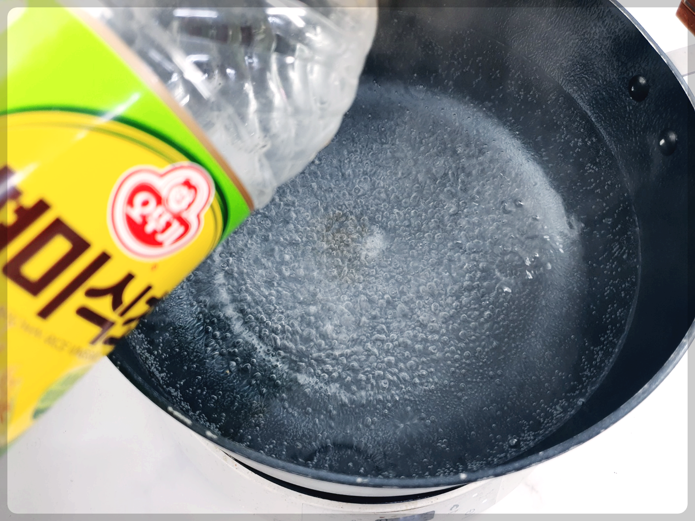 팔팔 끓는 물에 소금 한큰 술과 식초 한 큰 술
