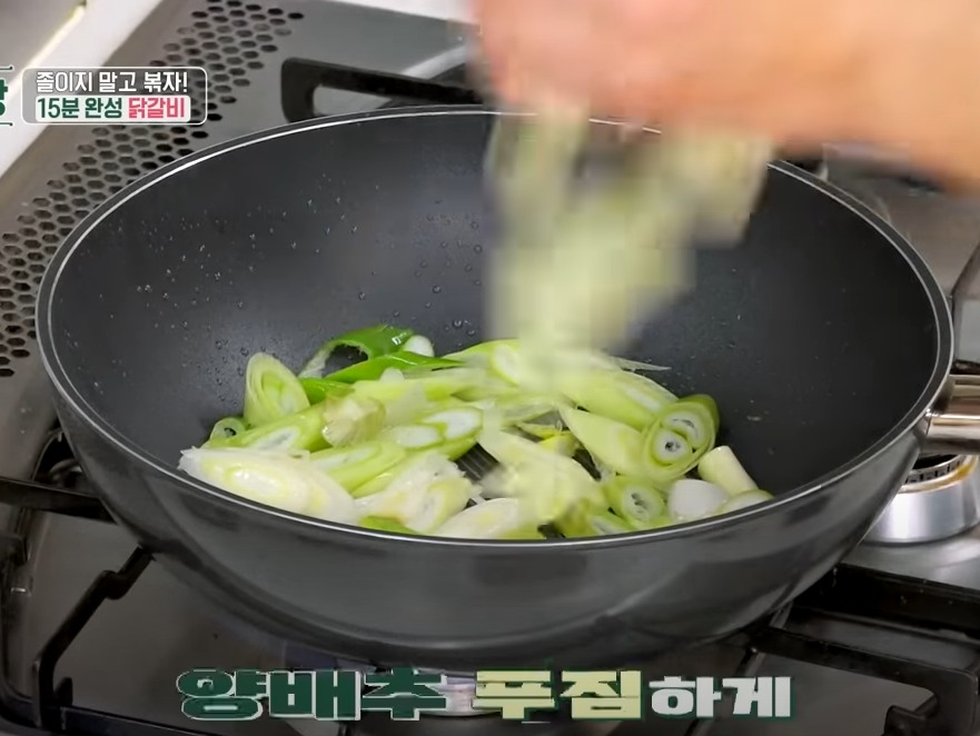 15분 안에 빠르게 조리를 완성하는 닭갈비는 시간이 없다면 30분이라도 꼭 재웠다 볶는 걸 추천드려요.
