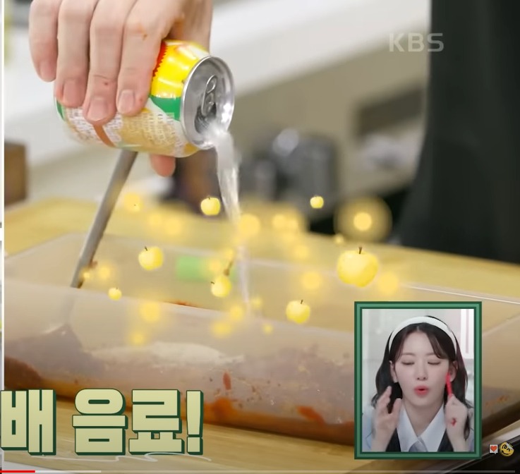 고추장 수북하게 4T, 고소한 참기름 1T 마지막 시판 배음료 작은 캔 한 개를 부어 주세요.