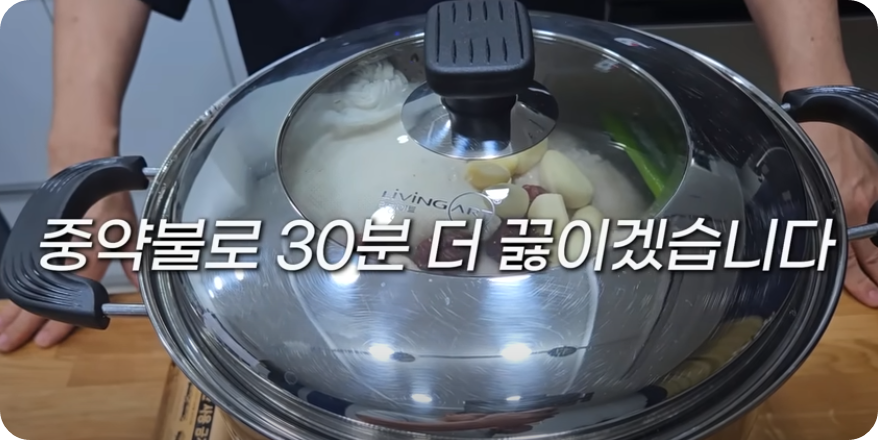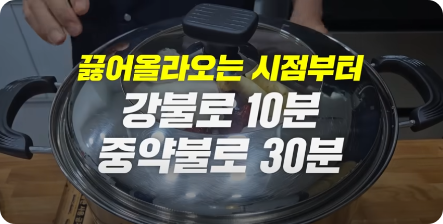 고기의 식감이나 맛이 덜어질 수 있다고 합니다. 곰솥의 뚜껑을 덮고 끓어오르면 시점부터 센 불로 10분 끓인 후