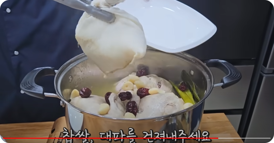 김대석 셰프님 닭백숙 맛있게 하는 황금레시피는 곰솥에 하는 걸 추천하시네요. 압력솥에 잘못하면 흐물 해져