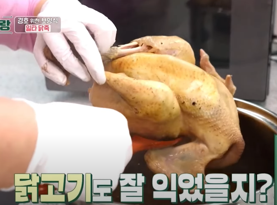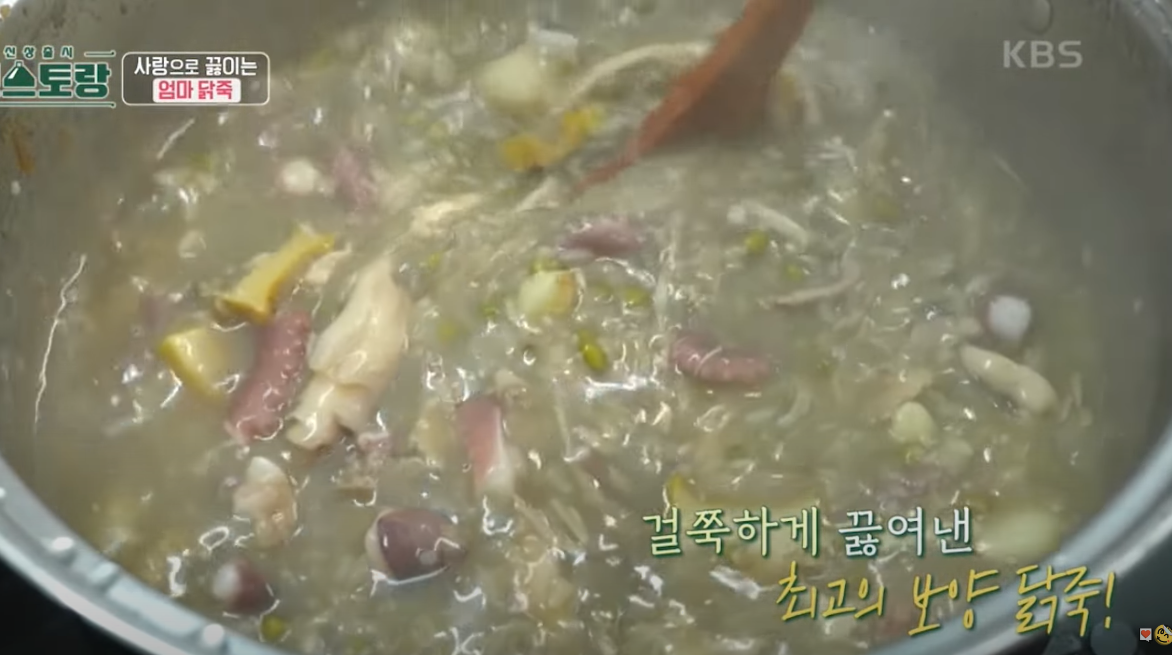 구수하게 만들어 보려고 합니다. 보양닭죽 정성스럽게 만들어 여름 보양요리 닭죽 편스토랑 박정수 배우님 아들 경호 씨를 위한 엄마 닭죽 만들기 시작합니다.