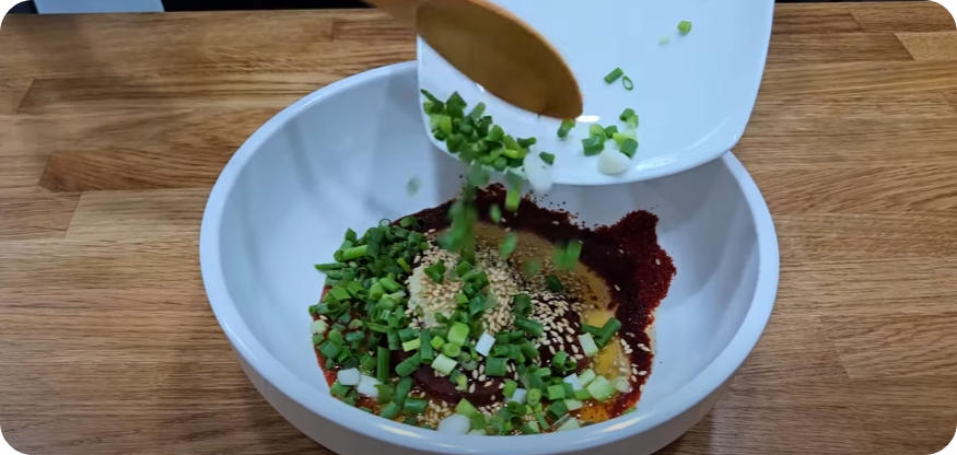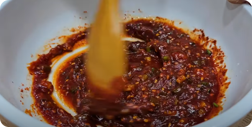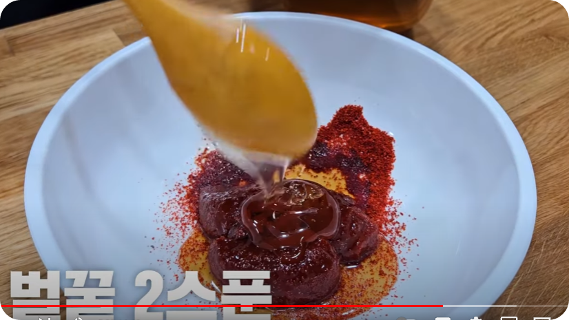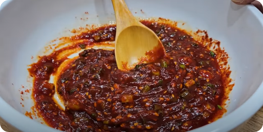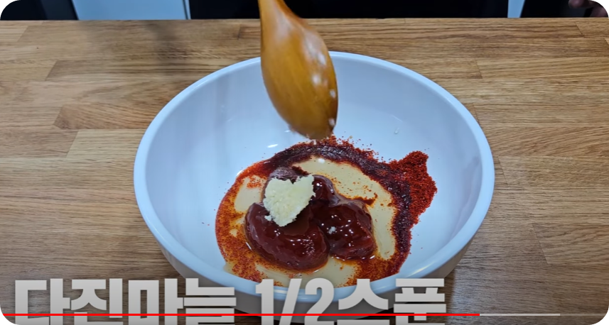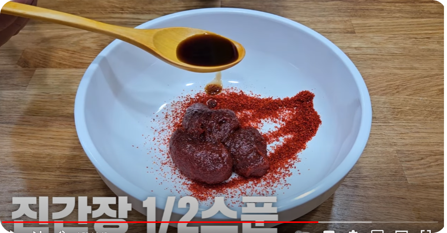양념 재료: 고운 고춧가루 1스푼, 고추장 3스푼, 매실청 1스푼, 진간장 1스푼, 다진 마늘 1/2스푼, 식초 1/2스푼