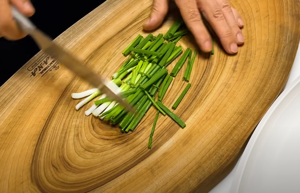 너무 얇게 썰면 식감이 없으니 4~5mm 도톰하게 썰어줍니다. 쪽파 7줄 반줌정도썰어주세요.