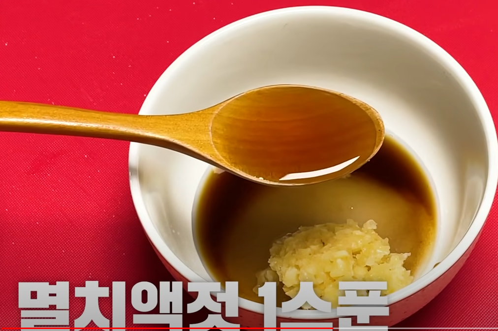 오늘의 양념장 맛있게 만드는 법으로 2배 식초 2스푼을 넣어줍니다. 2배 식초를 사용하는 이유는 일반식초를 사용하면