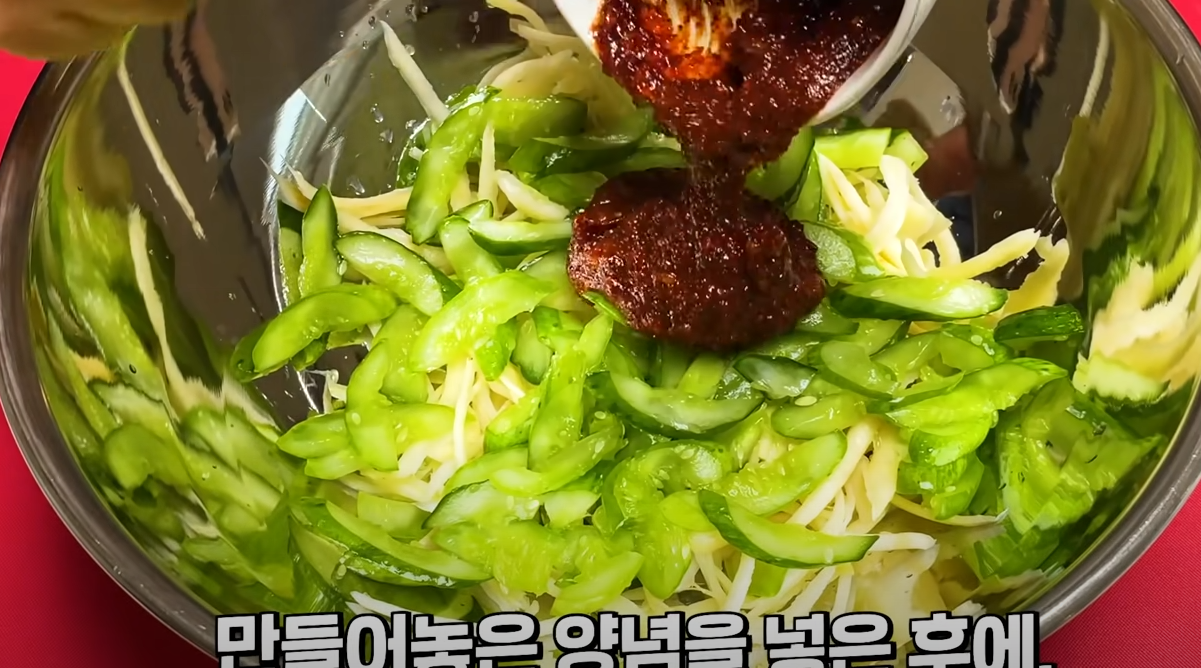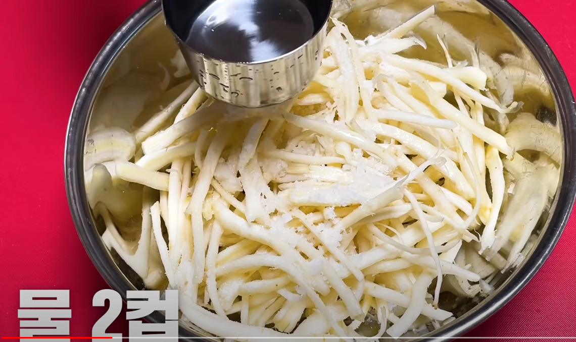 두 재료 물에 헹구는 거 아니니 그대로 물기를 꼭 짜서 사용합니다.