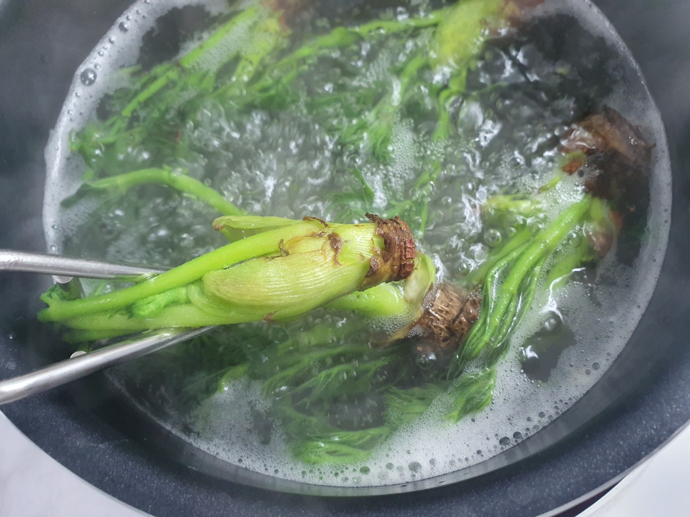 너무 오래 데치는 방법보다 알싸한 맛이 남아있는 상태 1분 이내로 파릇하고 아삭하게