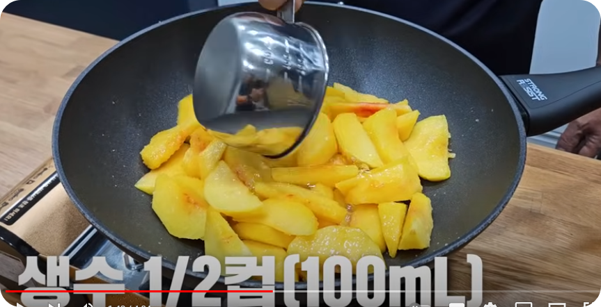 설탕과 소금으로 잠시 절여주는 시간을 줍니다. 소금이 들어가면 단맛이 더 상승되기 때문에 설탕과 소금을 같이 넣어