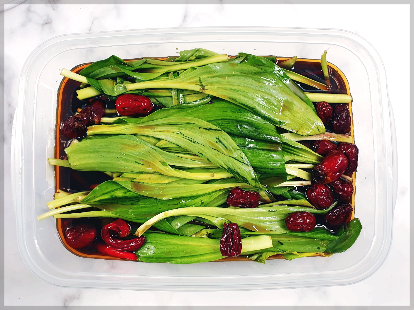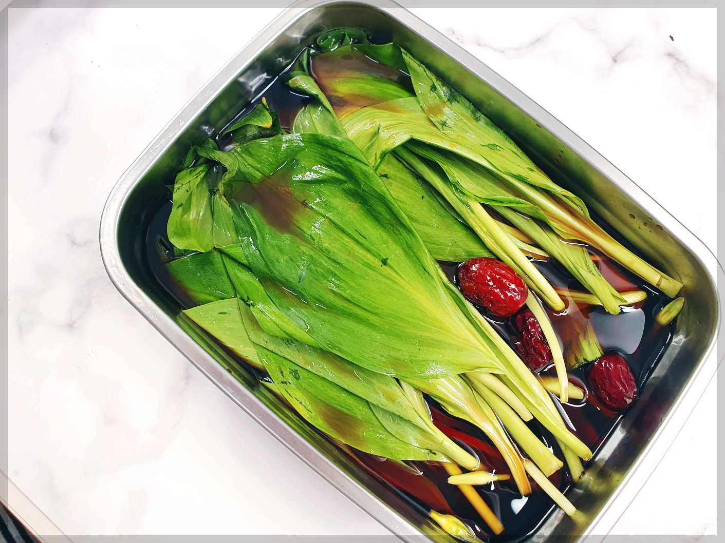 준비 재료: 명이나물 600g, 진간장 1리터, 설탕 1kg , 식초 1리터, 매실청 한 컵, 감초 5개 , 대추 약 20개
