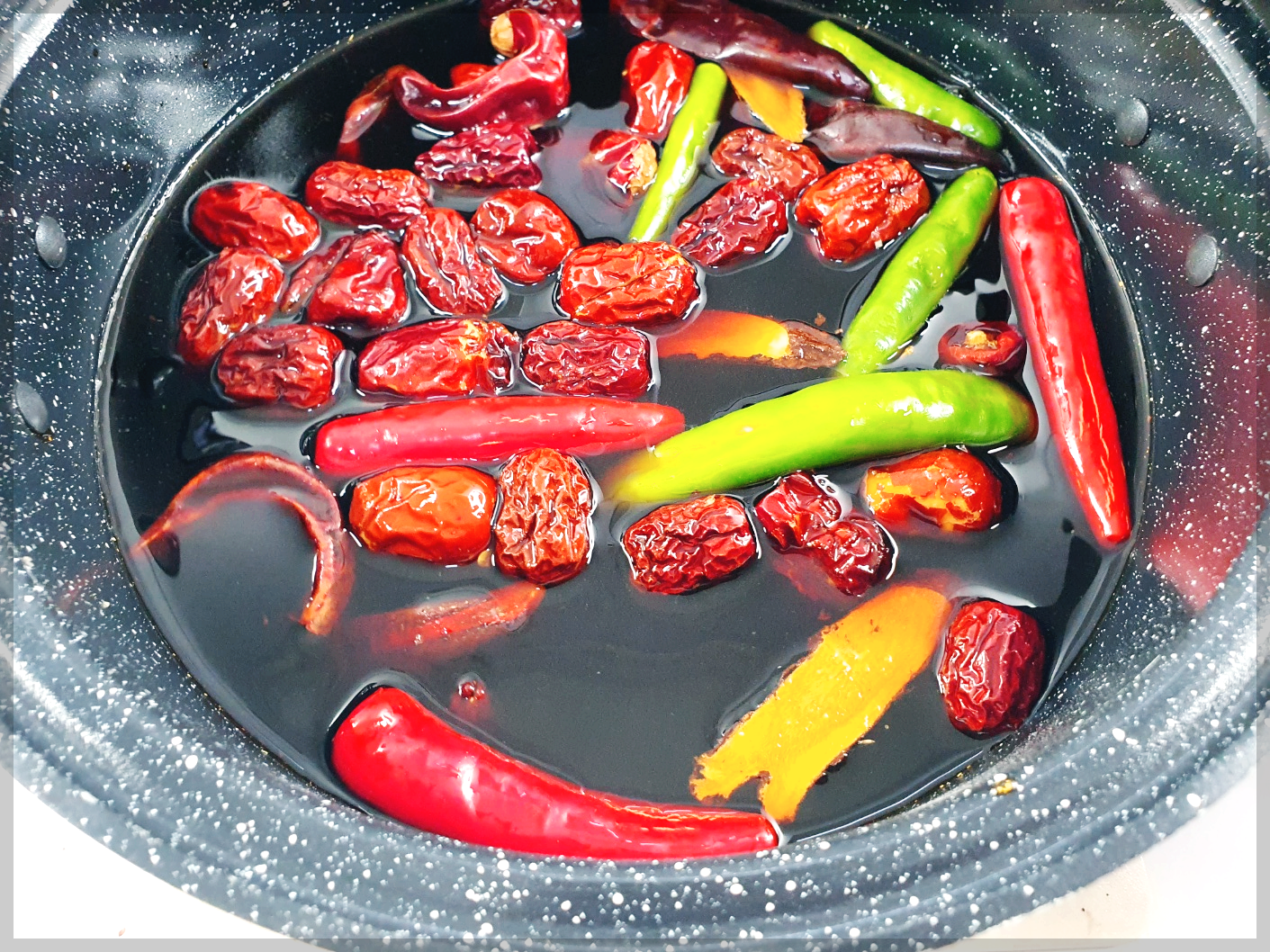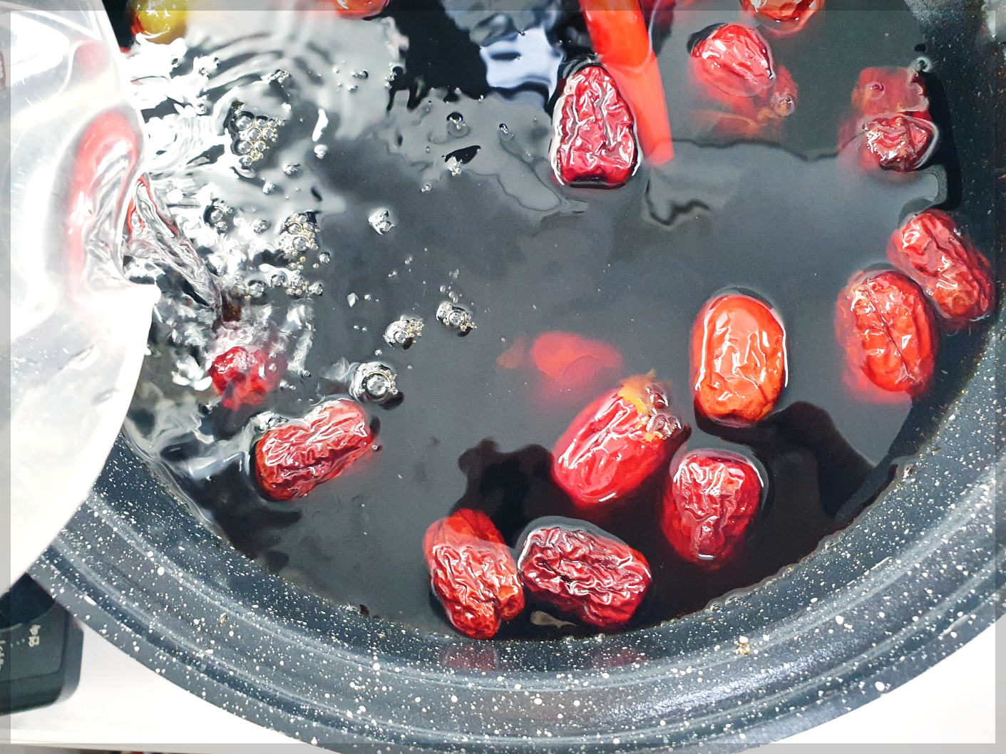 대추와 감초는 그대로 같이 넣어주시면 보관기간을 늘려주고 은은한 단맛은 덤입니다.,