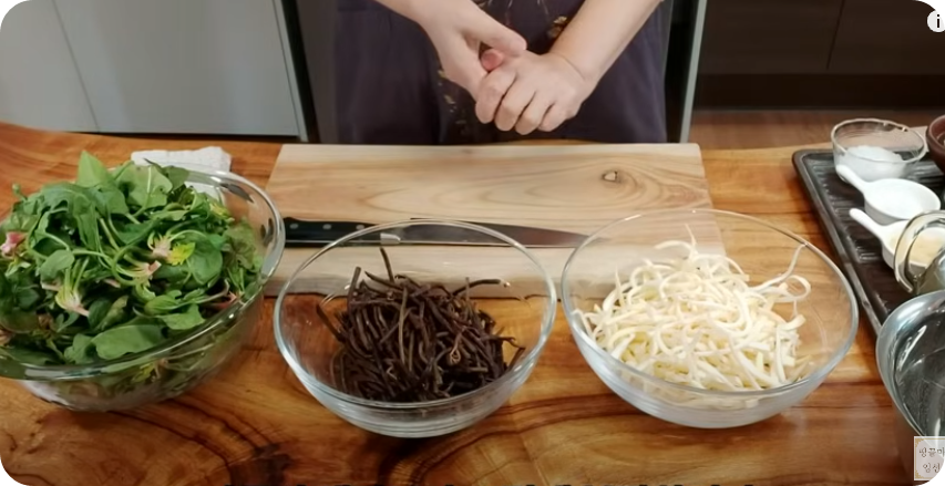 준비 재료: 시금치 300g, 도라지 200g , 삶은 고사리 300g,