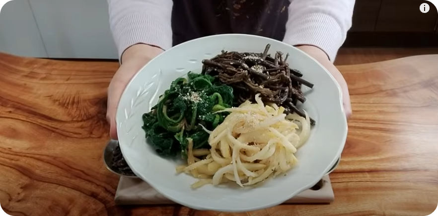 명절나물 삼색나물 만들기 가장 기본적인 양념만으로 깊고 풍부한 삼색나물 고사리, 도라지, 시금치나물 만드는 법