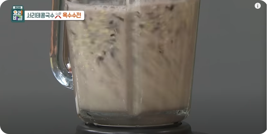 서리태콩은 최대한 곱게 갈아줍니다. 약 2분 30초 갈아줍니다. 껍질째 먹는 거니 곱게 갈아주세요.