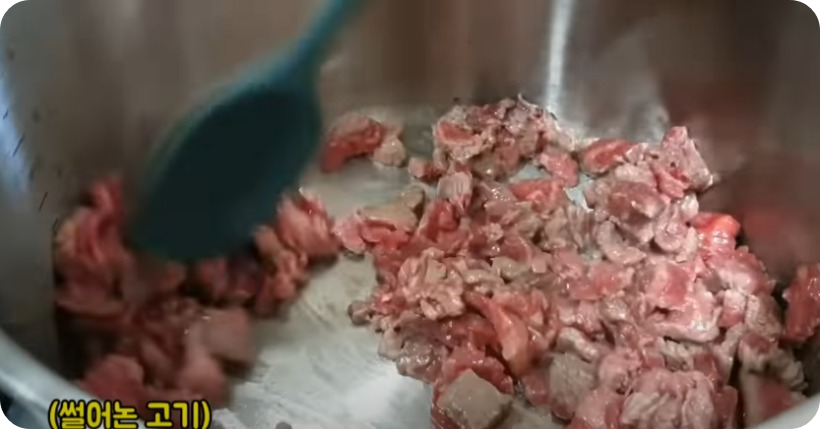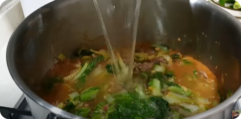 볶아줍니다, 충분히 볶아진 상태에서 멸치다시마육수 1.9리터를 붓고 끓여주세요.