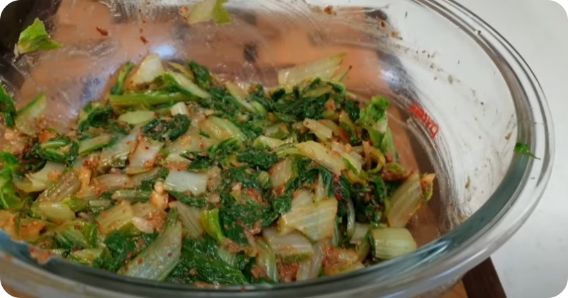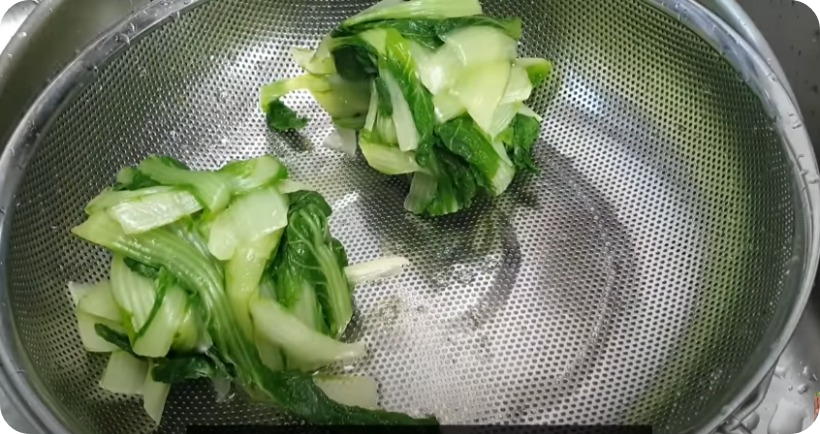 데친 얼갈이를 찬물에 2~3번 휑궈 채반에 받쳐 열기를 식혀준 후 꼭 짜주고 송송 먹기 좋게 썰어 볼에 담아