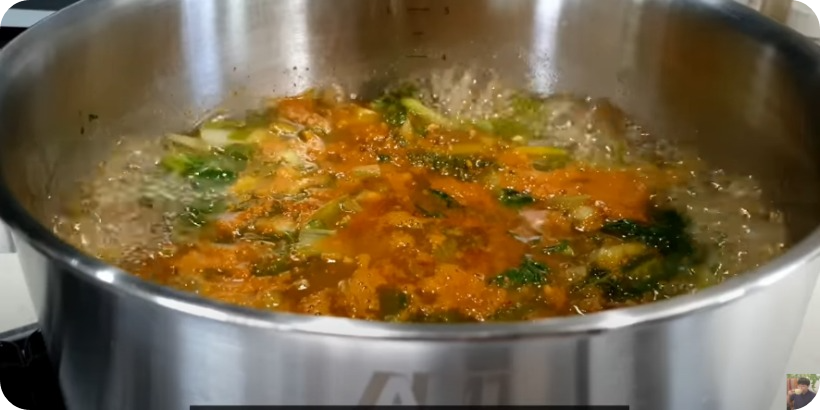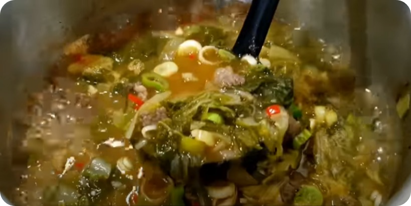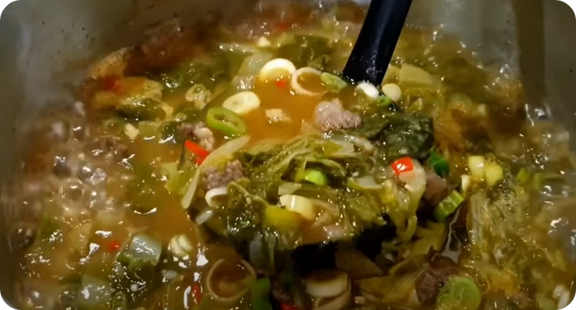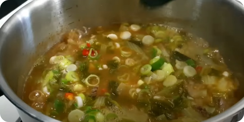 양념:집된장 3.5큰술 , 고춧가루 1큰술, 다진마늘 2큰 술, 멸치다시마육수 1.9리터, 국간장 1큰 술