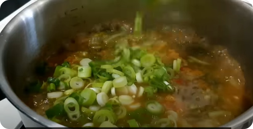 마지막 대파 넣어 2~3분간 더 중불에서 끓여줍니다. 시원하고 얼큰 칼칼한 소고기 얼갈이 배추된장국 완성입니다.