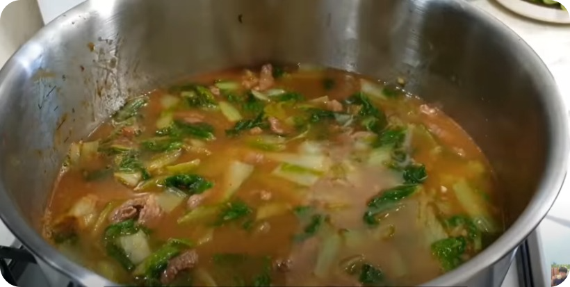 얼큰하고 칼칼한 국물을 더한 배추된장국에 소고기를 더한 영양 듬뿍 국 한 그릇 소고기 배추된장국