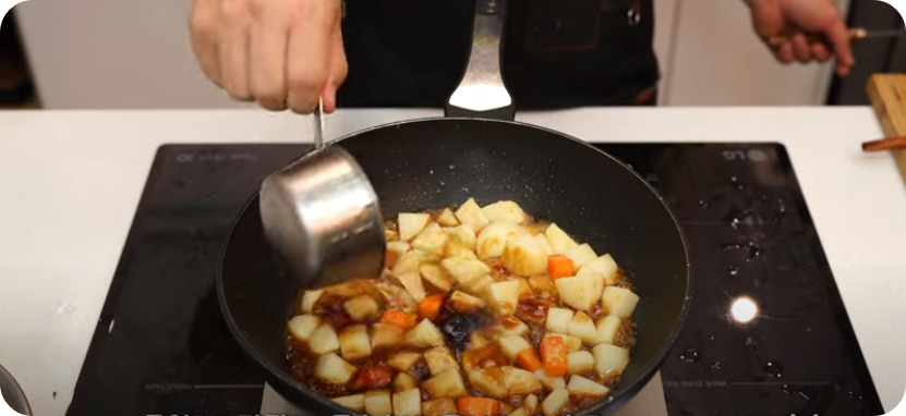 감자를 처음부터 작게 썰었기 때문에 오래 끓이며 졸이지 않아도 됩니다.