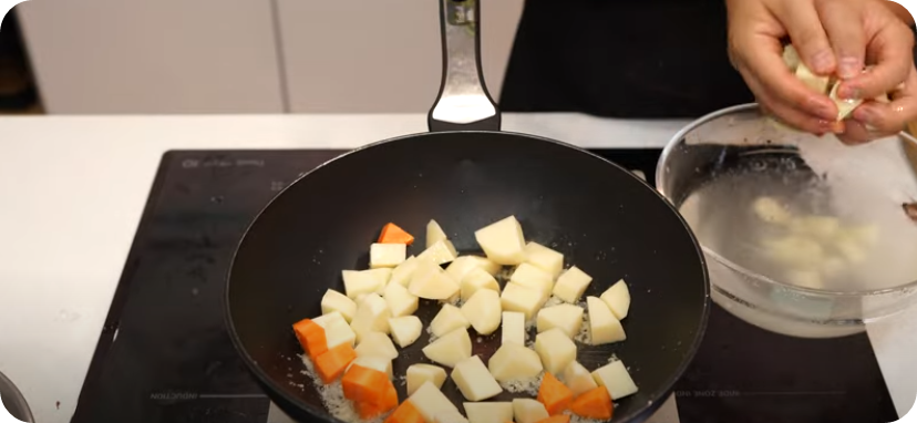 훨씬 좋아요. 마늘을 볶은 후 단단한 채소 순서로 넣어줍니다.