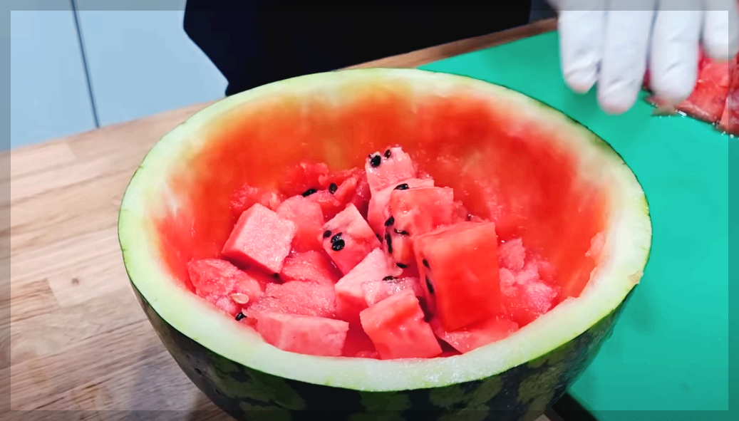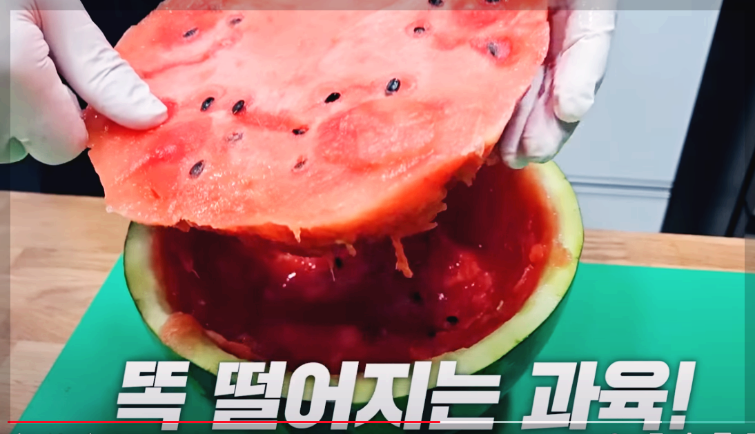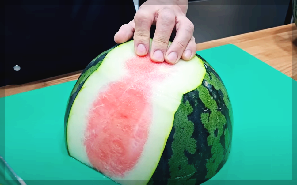 분리한 수박을 한쪽에 두고 남은 수박 과육을 긁어주세요