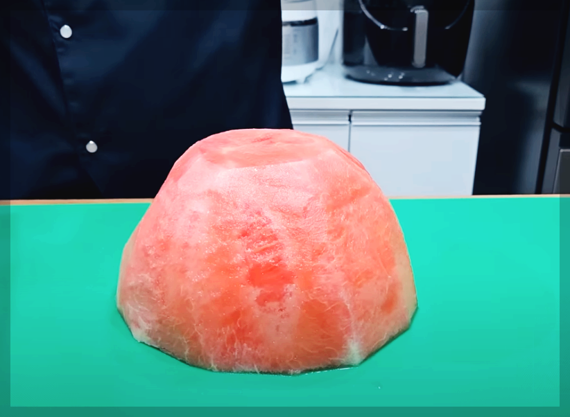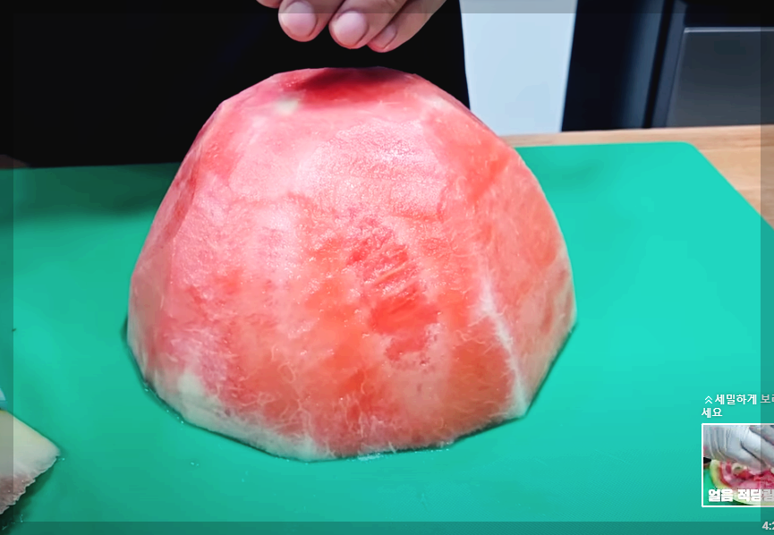 반통은 수박껍질을 화채 그릇으로 사용할 건데요. 수박 과육을 칼로 돌려가며 과육을 분리해 줍니다