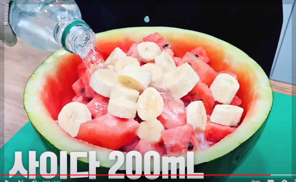 준비 재료: 수박 ,바나나,사이다,우유,설탕,얼음